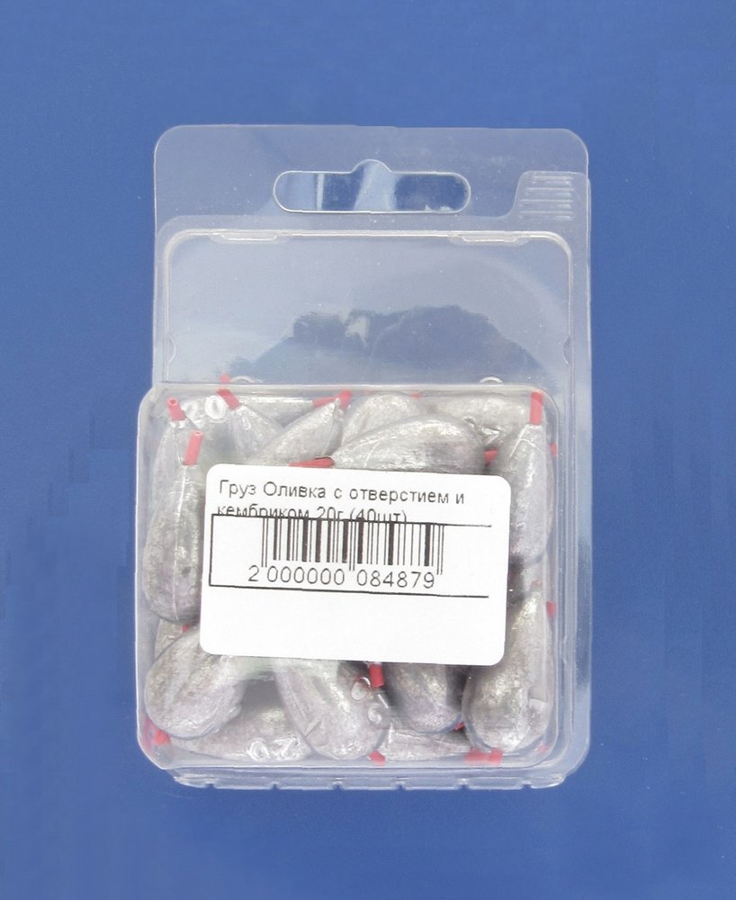 Груз оливка с отверстием и кембриком (каплевидная) 20г (уп.40шт)